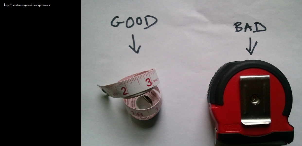 3. Go find your fabric tape measure. You know, the one that you dig out every once in a while so you can obsessively measure your thighs, hips, calves, wrists so that you can plug in the numbers on a website which will helpfully and (unfortunately) dispassionately tell you how fat you are for your height.