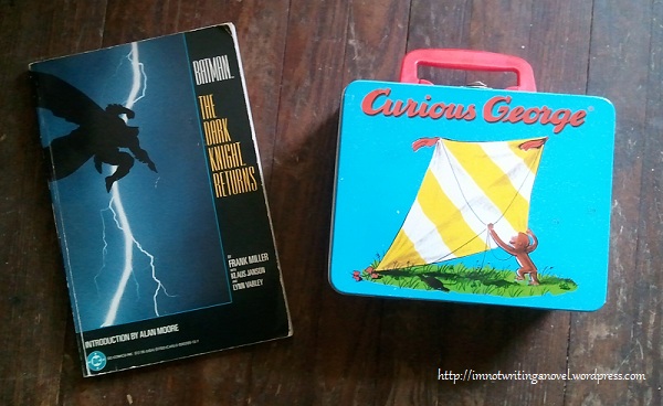 7. Batman: The Dark Knight Returns graphic novel.  Theater Guy again.  We won’t go into the psychology of this here.  Let’s just say it was a seminal read for Theater Guy, and I appreciated it for being that.  I was never into graphic novels myself (except for when TG also introduced me to the Sandman Chronicles) but I read this one a few times as it definitely got me caught up in the story.  It has made many moves with me from dorm to apartment to apartment… and eventually to our house. It will probably still be here when G is old enough to read, and I know TG will appreciate it being handed on to the next generation (especially as I know he has twin girls who may or may not be interested in dark superhero comics).