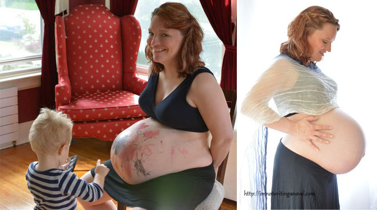 Nothing to complain about here. I did end up with some pretty big diastasis recti that allowed my uterus to project out so far along my umbilicus that Nipper seemed, at times, to be laying parallel to the ground (see photo below that makes it look like I’m smuggling a watermelon in there…). We had no scary complications, and Nipper didn’t go breech at the last-minute. So far, so good.